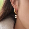 Stainless steel golden earrings, with cultured pearls, anti-allergic
