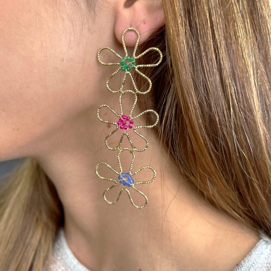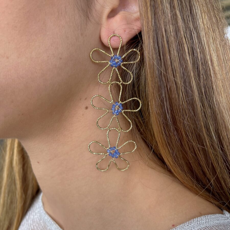 Stainless steel flower earrings in gold with blue and multicolour