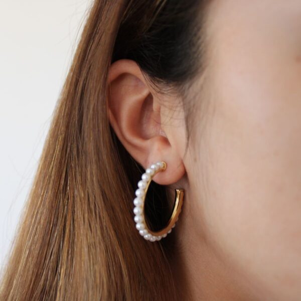 Stainless steel earring, with anti-allergic pearls