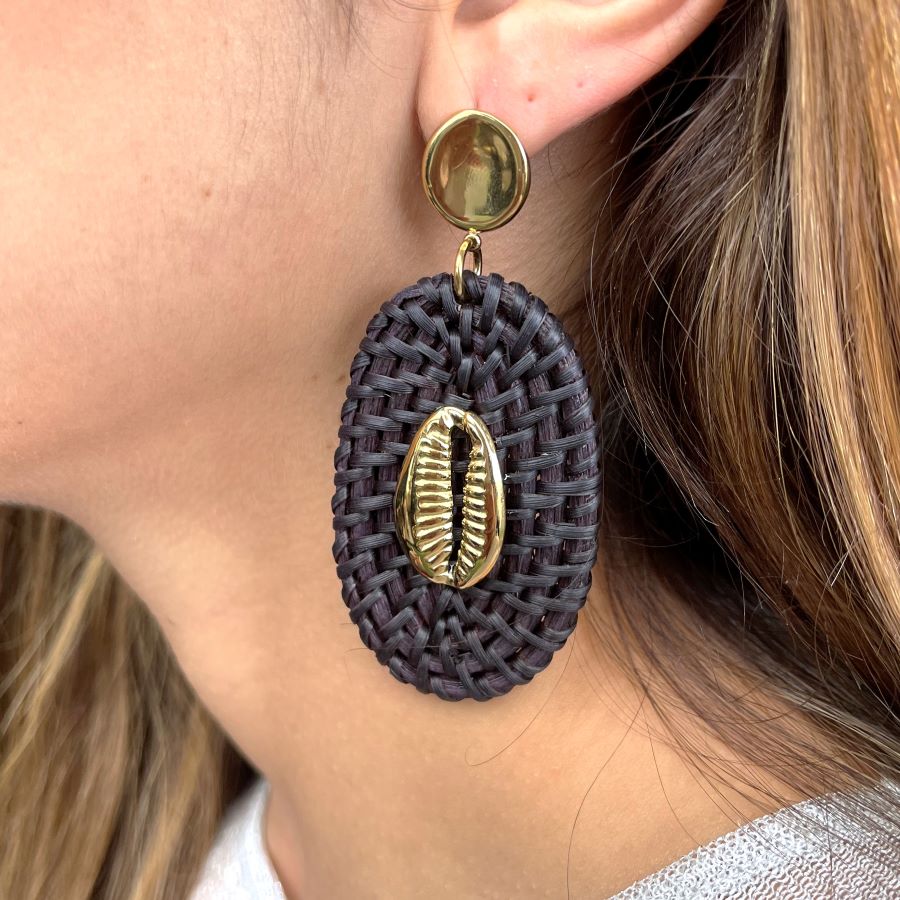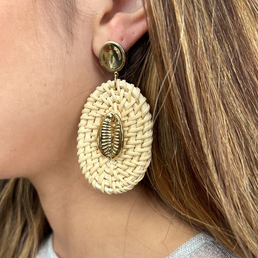 Earrings in raffia and stainless steel