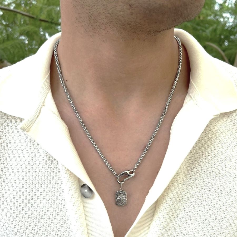 Colar rosa dos ventos em aço inoxidável prateado com fecho gancho