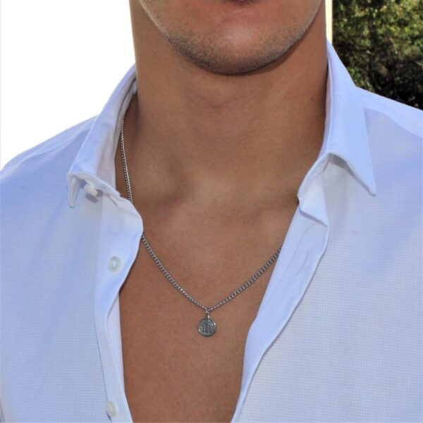Saint Benedict necklace in silver-plated stainless steel, medal engraved on both sides