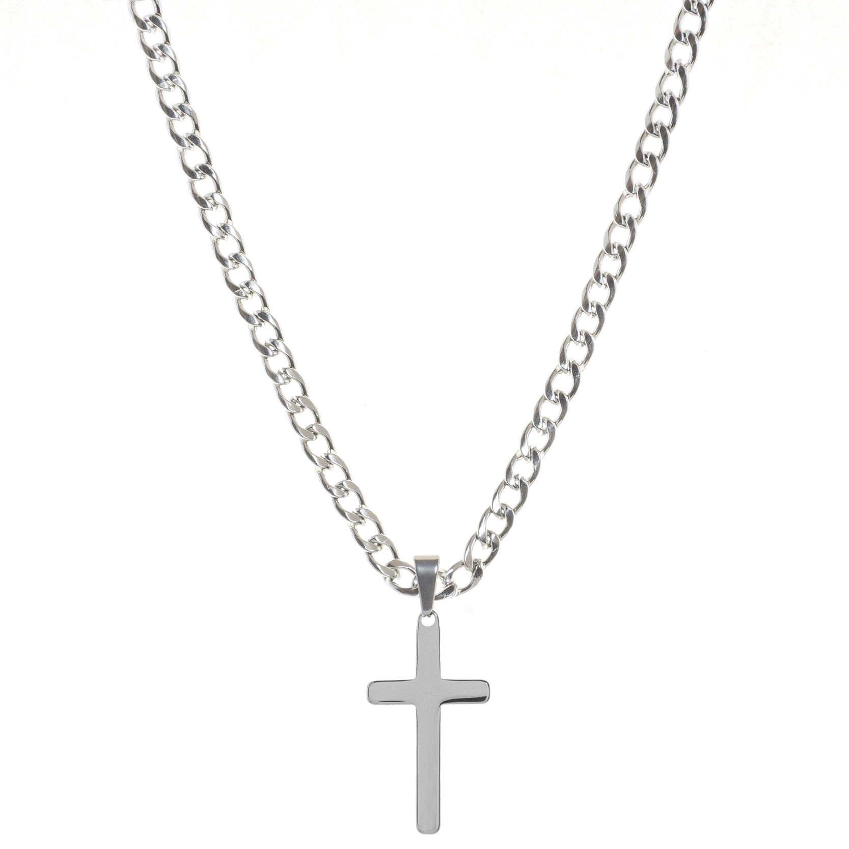 Colar crucifixo em aço inoxidável prateado ou dourado