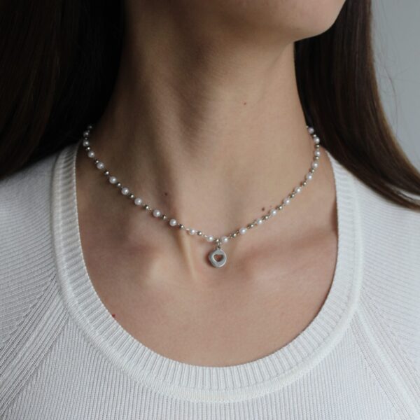 Gold or silver-plated stainless steel and pearls heart necklace