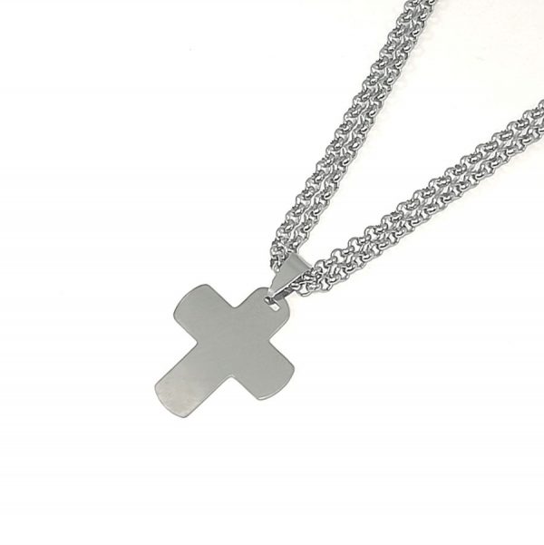 Stainless steel silver cross necklace, to wear long or with two loops