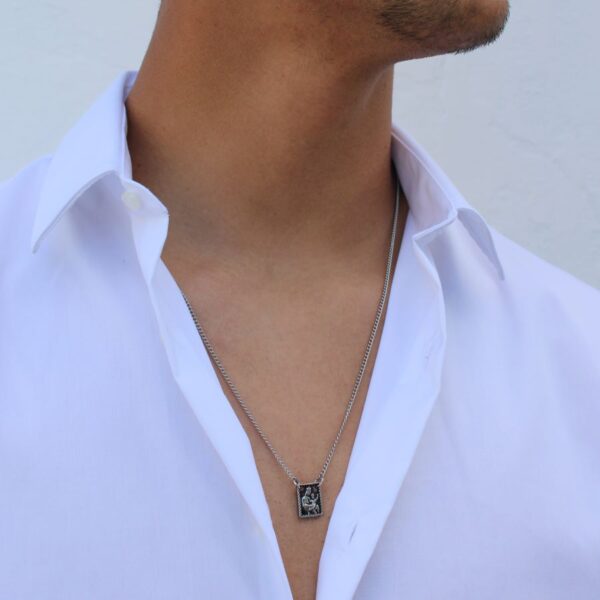 Silver-plated stainless steel scapular, with two medals of Our Lady of Mount Carmel