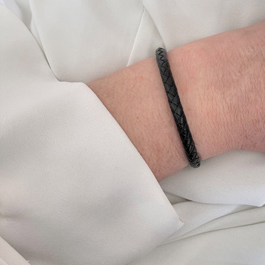 Interlaced leather strap with stainless steel carabiner clasp, brown or black