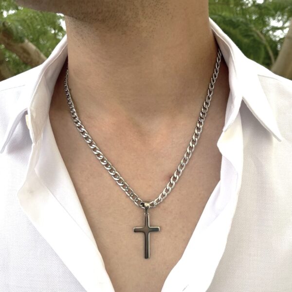 Colar crucifixo em aço inoxidável prateado ou dourado