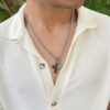 Colar cruz e São Bento com fecho T em aço inoxidável prateado