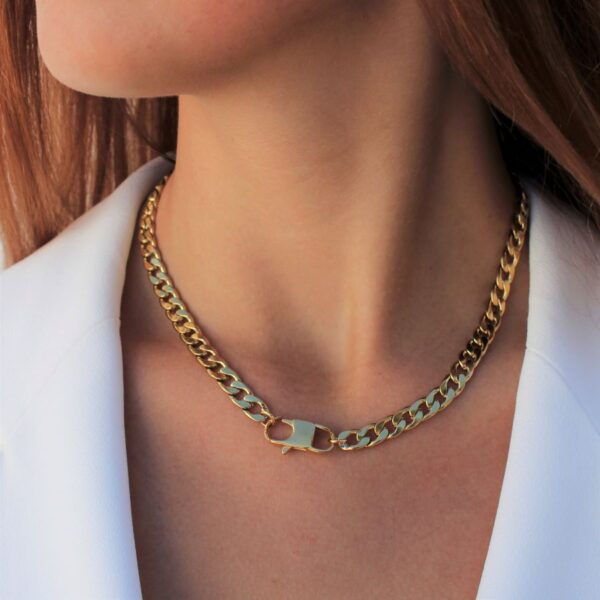Colar (choker) em aço inoxidável dourado com fecho garra de lagosta