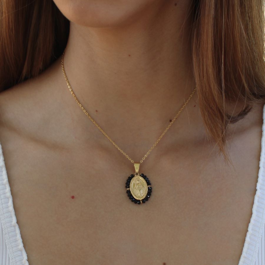 Colar aço Siena Nossa Senhora missanga