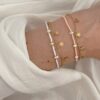 Pulseira em aço inoxidável e missanga, dourado e prateado com crucifixo