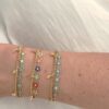 Pulseira em aço inoxidável dourado, flores em azul, verde ou multicolor
