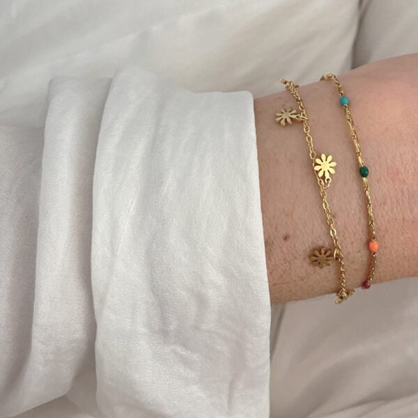 Pulseira dupla em aço inoxidável dourado e multicolor
