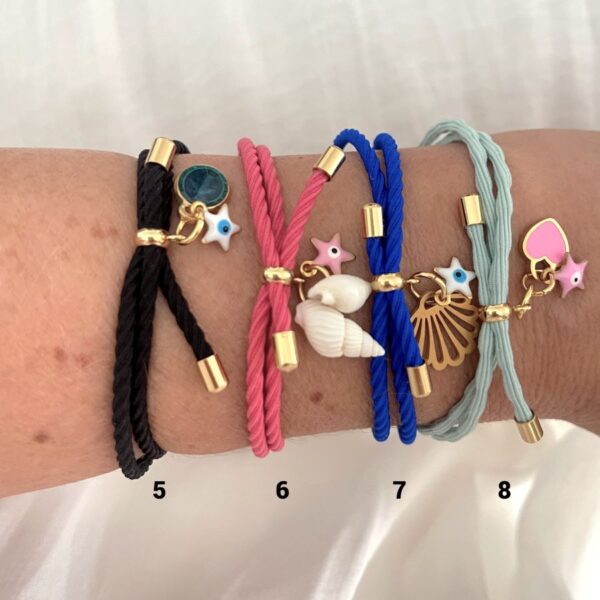 Pulseira fio elástico dupla ajustável, com pendente(s) em aço inoxidável