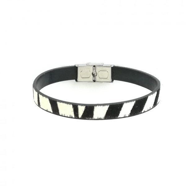 Pulseira em pele print zebra com fecho em aço inoxidável